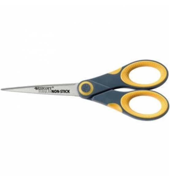 Die Softgrip Schere Titanium Non Stick verfügt über Schneidflächen mit Präzisionsschliff. Ihre haftabweisende Titannitrid Beschichtung mit Non-Stick Formel ist besonders hervorzuheben. Durch die Non-Stick Formel sind die Klingen unempfindlich gegen jegliche Klebstoffe, somit lässt sich eine breitere Palette an Materialien schneiden.