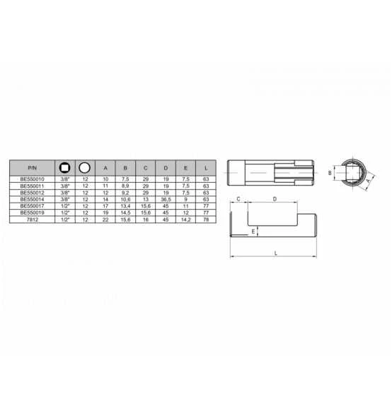 - 1/2”-Vierkantantrieb