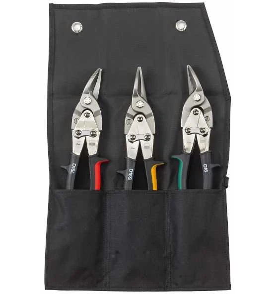 Je 1 Figurenschere rechts- und linksschneidend mit abgewinkelten Schneiden und 1 Figurenschere linksschneidend mit gerader Schneide.