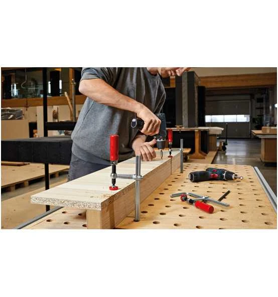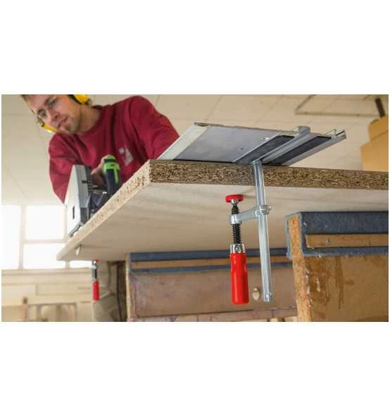Zum sicheren Fixieren von Führungsschienen der Marken Festool, Protool, Metabo, Makita, Hitachi, etc. und zum Spannen in Profilen sowie auf Arbeitstischen