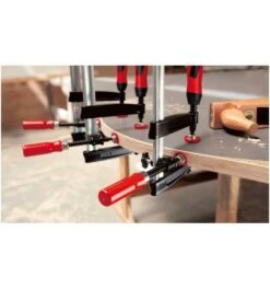 Spindel brüniert, beweglich gelagerte Druckplatte, Holzgriff. Praktisches Zusatzwerkzeug für alle handels-üblichen Schraubzwingen. Für max. Schienenstärke von 13 mm geeignet, zum einfachen Verleimen von Kanten.