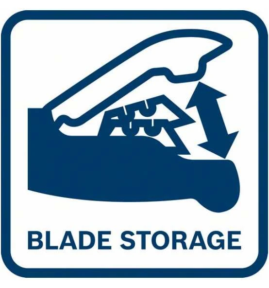 Die Klinge kann schnell und werkzeuglos gewechselt werden und drei Ersatzklingen befinden sich im Handgriff.