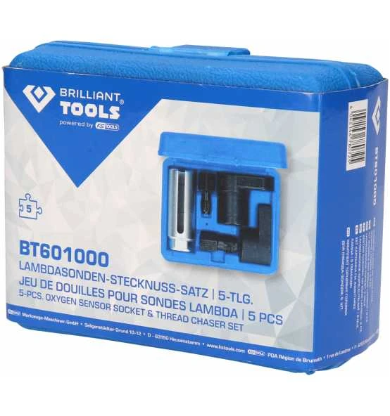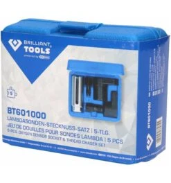 Der BRILLIANT TOOLS Lambdasonden-Stecknuss-Satz BT601000 ist ein wichtiges Werkzeug für den Mechaniker. Die Stecknüsse sind geschlitzt, um Platz für das Kabel zu schaffen. Diese sind ideal für den Ausbau oder Austausch von Sauerstoff-Sensoren an Auspuffkrümmern etc. Die Gewindestrehler sind zur Reinigung und Reparatur der beschädigten Gewinde. Alle Werkzeuge sind in einem Aufbewahrungskoffer enthalten, für einen einfachen Transport.