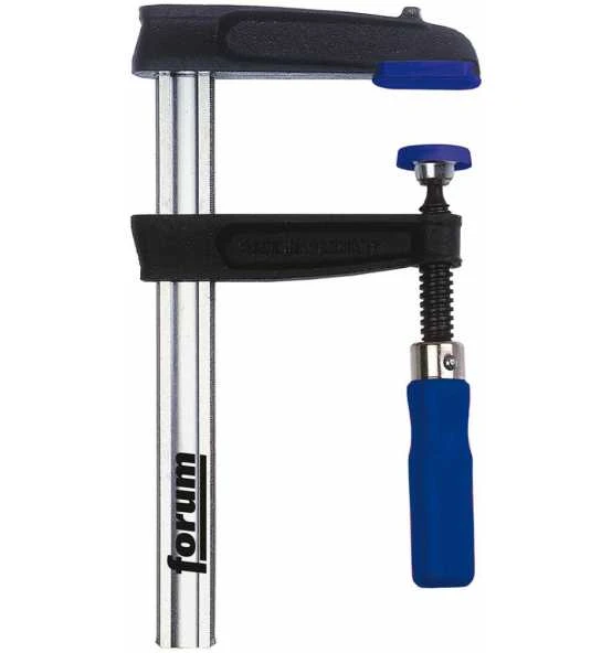 Gleit- und Festbügel in stabiler Doppel-T-Form aus hochwertigem Guss, pulverbeschichtet, mit beweglicher Druckkappe, lackierter Holzgriff, Schutzkappen bis einschl. 400 mm Spannweite, Gleitbügel ohne Rutschsicherung.