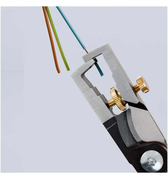 Universelle Einstellung der Abisoliermesser durch eine Rändelschraube.
