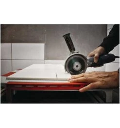 mit Absaugung · Staubbox zum Bearbeiten von Fliesen, mit ausklappbaren Abstützarmen · Auflagefläche gesamt bis ca. 122cm