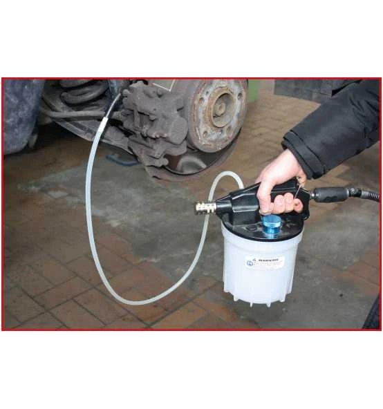 - über die druckluftbetriebene Pistole wird die alte Bremsflüssigkeit abgesaugt