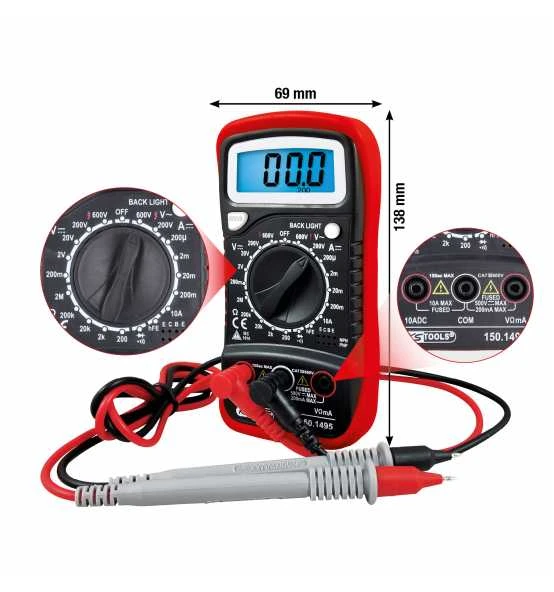 - großes LCD-Display mit 3.1/2-stelliger kontrastreicher Anzeige mit Hintergrundbeleuchtung