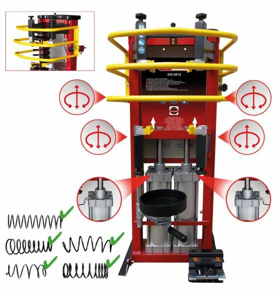- durch Doppel-Zylinder mit bis zu 2.400 kg auch für starke Federn geeignet (Transporter, SUV etc.)