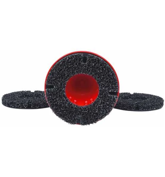 - minimale Staubentwicklung durch offenporiges Schleifmittel und topfförmigen Schleifteller
