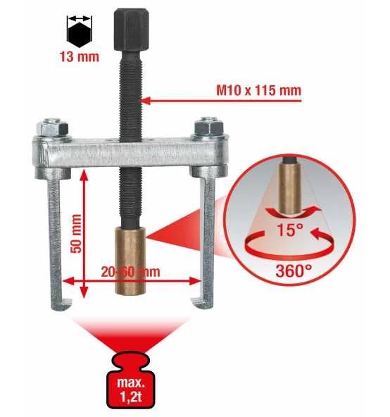 - hohle Abzieherspindel mit Messingskappe zum beschädigungsfreien Abstützen auf der Wischerarmwelle mit Waschdüse