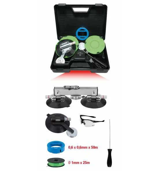 - ideal fĂŒr den fachgerechten und schonenden Ausbau von geklebten Windschutzscheiben sowie den meisten Heck- und Seitenscheiben