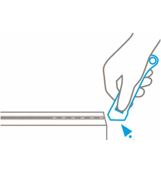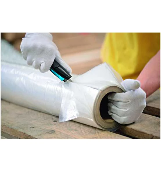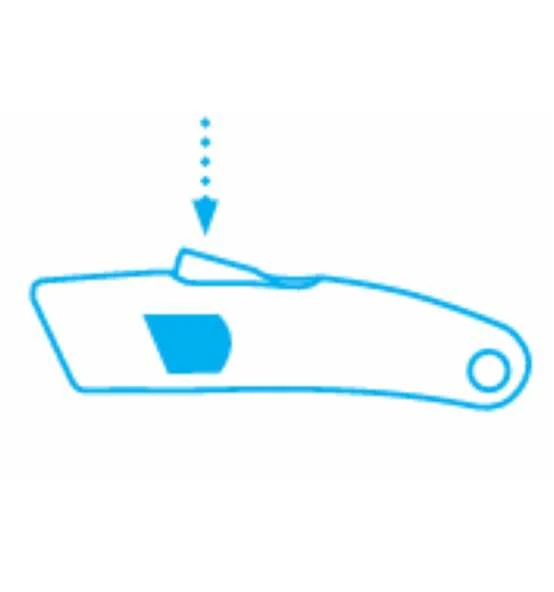 Mit vollautomatischem Klingenrückzug: Verlässt die Klinge das Schneidmaterial, wird die Klinge vollautomatisch in den Griff zurückgezogen, ohne dass dies vom Anwender beeinflusst werden kann. Mit einer Trapezklinge, Stärke 0,63 mm, die maximale Schnitttiefe beträgt 20 mm, der vollautomatische Klingenrückzug funktioniert aber auch bei nicht voll ausgefahrener Klinge. Ergonomischer Griff aus Aluminium, für Rechts- und Linkshänder geeignet. Zum Schneiden von normalem Verpackungsmaterial, mehrlagigen Kartons usw.