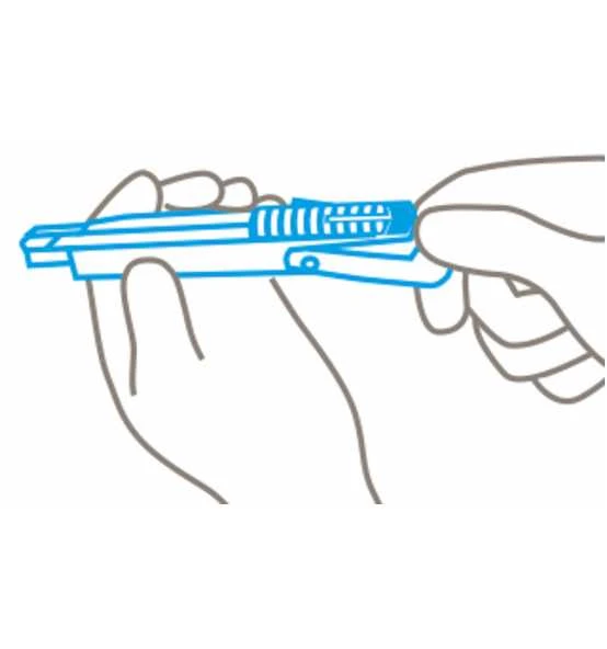 • Verlässt die Klinge das Schneidmaterial, wird sie automatisch in den Griff zurückgezogen, wenn der Schieber nicht betätigt wird