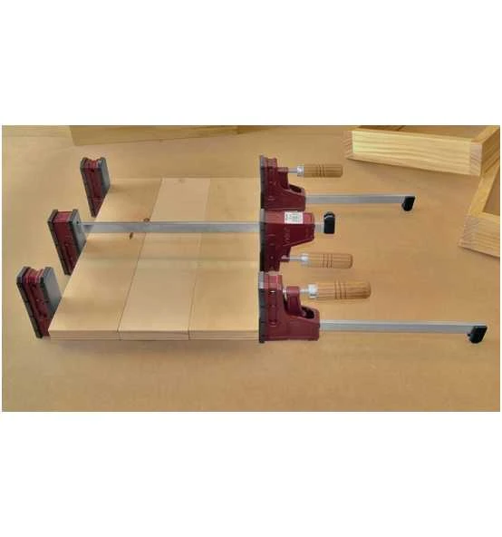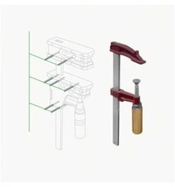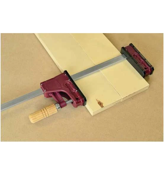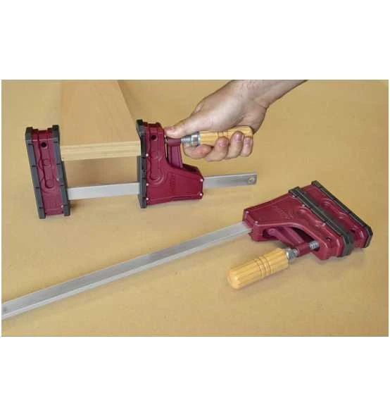 Parallelzwinge hält die Druckfläche jeder Spannbacke parallel · max. Spannkraft ca. 400 kg · Schiene 18 x 7 mm aus verzinktem Stahl · Kern aus Stahl, Ummantelung aus mit Fiberglas verstärktem Nylon · sieben Achsen aus Stahl · Griff aus Buchenholz · trapezförmige Spindel sorgt fĂĽr einen schnellen Vorschub · Fallschutzbremse an der beweglichen Backe · austauschbare Schutzkappen, schĂĽtzende Auflage auf der Schiene und FuĂź zur Nivellierung · besonders geeignet fĂĽr die Tischlerei und beim Heimwerken zum Kleben von Paneelen, Montage von Schubladen oder Rahmen · Optional erhätliche, schwenkbare Aufsätze Art. 4000 831 021, um sowohl geneigte als auch parallele Flächen einspannen – so können eigene Aufsatzprofil wie Dreiecke oder Kurven verschraubt werden Weitere technische Eigenschaften: · Schienenquerschnitt: 18x7mm