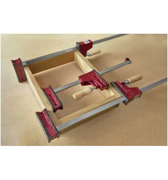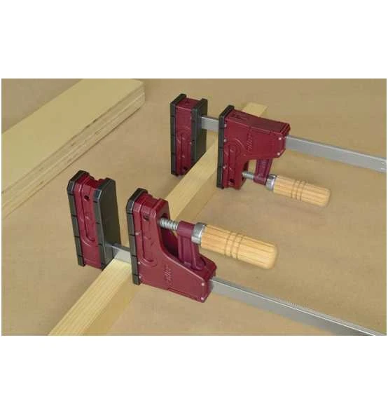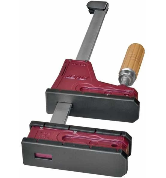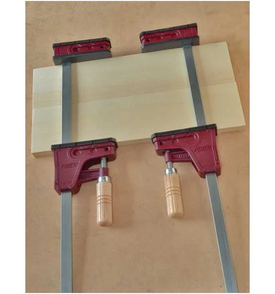 Parallelzwinge hält die Druckfläche jeder Spannbacke parallel · max. Spannkraft ca. 400 kg · Schiene 18 x 7 mm aus verzinktem Stahl · Kern aus Stahl, Ummantelung aus mit Fiberglas verstärktem Nylon · sieben Achsen aus Stahl · Griff aus Buchenholz · trapezförmige Spindel sorgt fĂĽr einen schnellen Vorschub · Fallschutzbremse an der beweglichen Backe · austauschbare Schutzkappen, schĂĽtzende Auflage auf der Schiene und FuĂź zur Nivellierung · besonders geeignet fĂĽr die Tischlerei und beim Heimwerken zum Kleben von Paneelen, Montage von Schubladen oder Rahmen · Optional erhätliche, schwenkbare Aufsätze Art. 4000 831 021, um sowohl geneigte als auch parallele Flächen einspannen – so können eigene Aufsatzprofil wie Dreiecke oder Kurven verschraubt werden Weitere technische Eigenschaften: · Schienenquerschnitt: 18x7mm