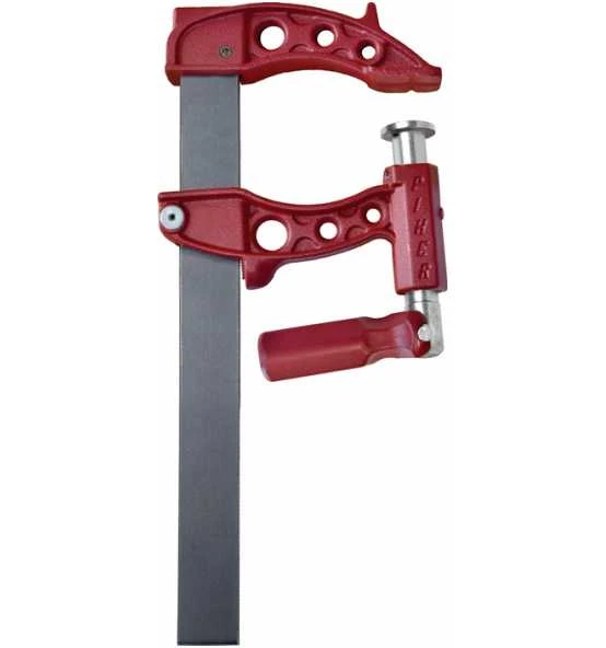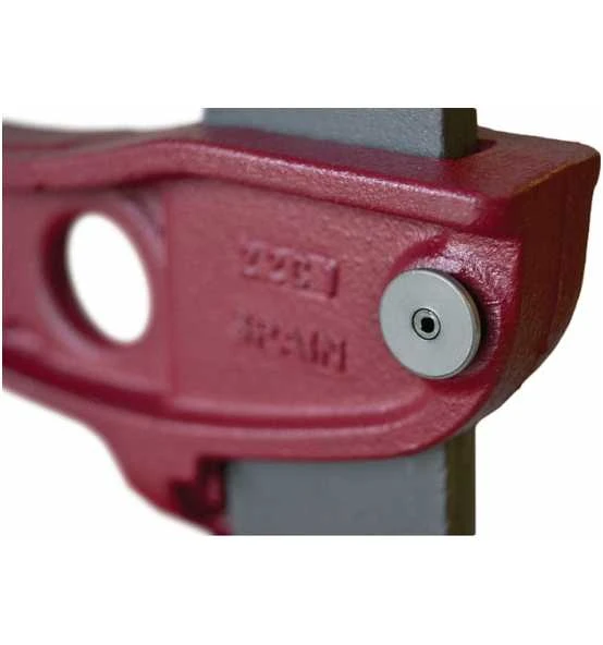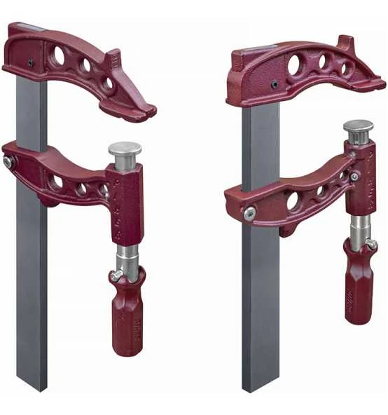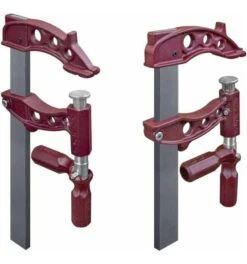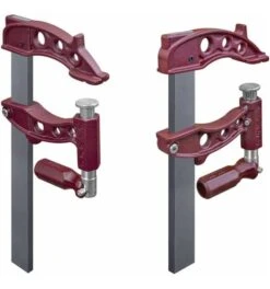 neuartige, patentierte Bolzen-Schraubzwinge · Teller dreht sich nicht mit, sobald Griff gedreht wird kein Verrutschen beim letzten Dreh · Bremse verhindert ungewolltes Herunterrutschen · Kreuzeinkerbungen zum erleichterten Spannen von runden Rohren · Spannkraft bis zu 9000 N · max. Spannhöhe 20 cm, Ausladung 12 cm · Weitere technische Eigenschaften: · Gewicht: 3,44kg