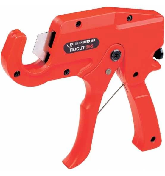 Präziser Einhandschneider, kraftvolles und ermüdungsfreies Durchschneiden selbst größerer Wandstärken mit minimalem Kraftaufwand, breite Rohrauflage für präzisen Punktanschnitt, Schnellrückstellung des Messers per Knopfdruck. Zum Trennen und Ablängen von PE-, PE-X-, PP-, VPE-, PB- und PVDF-Rohren.