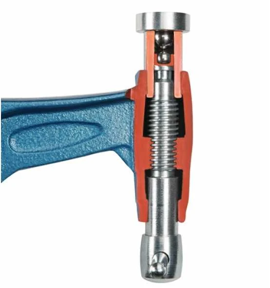Hinweis: Durchschnittlich wird 60% mehr Druckaufbau bei gleichem Kraftaufwand gegenĂĽber einer Standardzwinge erreicht.