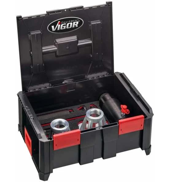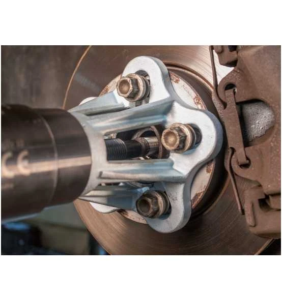- Anwendung: Nabe mit Radschrauben des Fahrzeugs verschrauben, Antriebswelle mit 18 Tonnen oder 22 Tonnen Hydraulikzylinder auspressen (Montage des Schlagkörpers ermöglicht zusätzliches Kraftaufbringen über Einsatz eines Hammers), Herausziehen der Radnabe mit Schlaghammer V2922 und Adapter V2872
