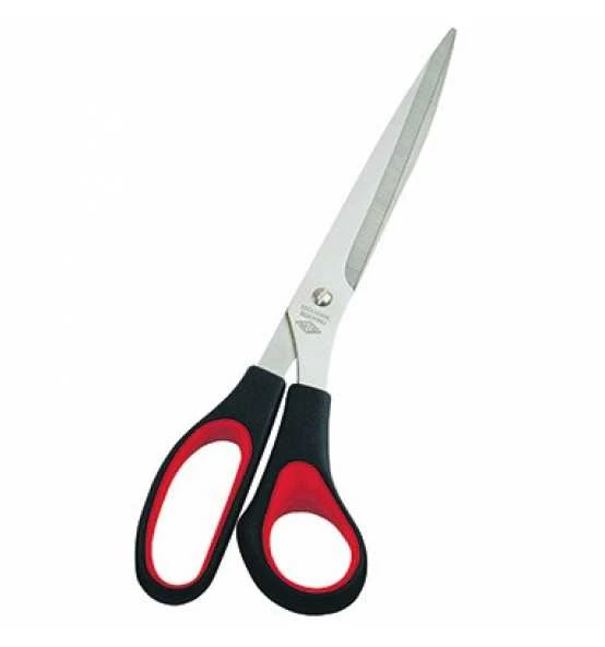 WEDO Universalschere mit messerscharfer Schneide und leichtem Gang. Einzeln schlank zugeschliffene Scherenblätter. Handgerecht geformter Griff mit roten Soft-Einlagen · auf SB-Probierkarte.