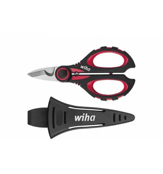 Die Elektrikerschere ist der ideale Begleiter für den Elektriker im mobilen Einsatz. Seine universelle Einsetzbarkeit bestätigt die Schere mit den vier Funktionen: Ablängen, Abmanteln, Abisolieren und Crimpen. Dank der großen Klingenkerbe und der feinen Mikroverzahnung lassen sich Kabel mühelos ablängen, ohne dass das Kabel aus der Schere rutscht. Weiterhin ist auch das Abmanteln und Abisolieren von Kabeln möglich. Die Kerbe hinter dem Scherengelenk dient zum einfachen Vercrimpen von Adernendhülsen zwischen 1 – 5 mm². Für den Einsatz unterwegs kann die Elektrikerschere dank der praktischen Schutzhülle inklusive Halteclip bequem am Gürtel festgeklemmt werden.